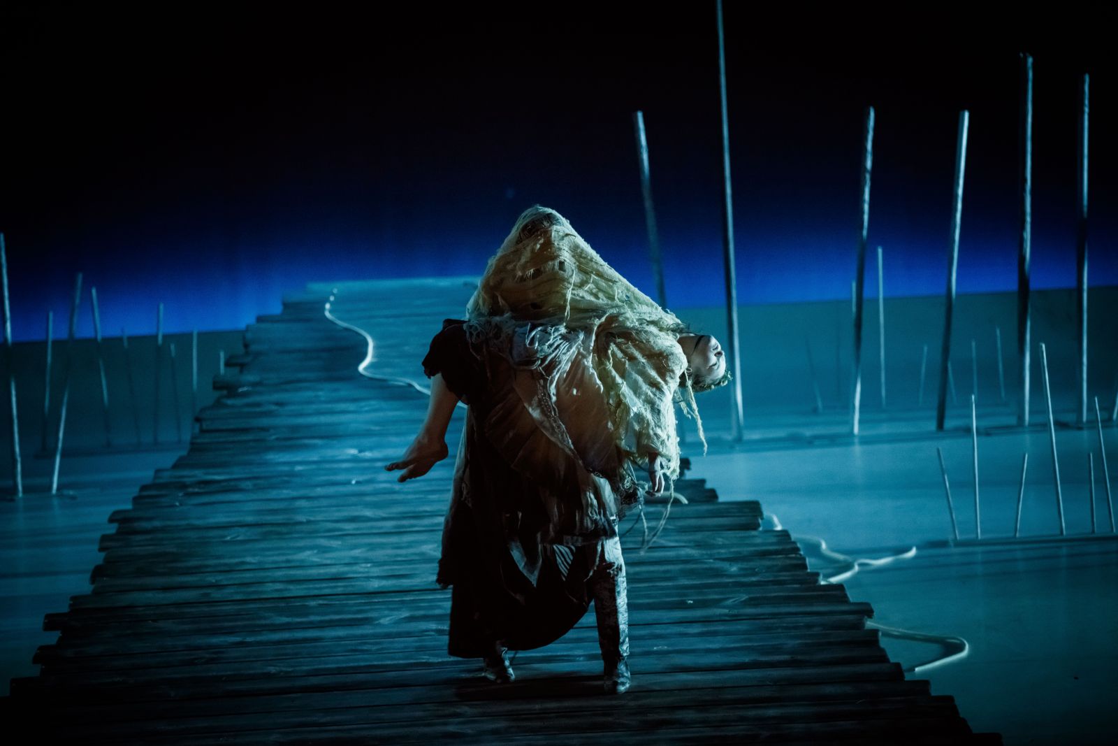 DW: Sprawy potoczyły się nadzwyczaj pomyślnie. Najpierw zwróciłem się do kompozytora, Łukasza Godyli. Dałem mu tylko oryginalne teksty i zapisy melodyczne jako inspirację. On genialnie to przekształcił. Chcieliśmy stworzyć coś nowoczesnego. Jedyny wyjątek to „Hej, żeglujże, żeglarzu” – tę melodię przemyciliśmy celowo, jako punkt odniesienia. Choć i jej nadaliśmy mroczny, zupełnie inny charakter niż w tradycyjnym wykonaniu. Sami Kaszubi po spektaklu mówili: „Tak, to była ta pieśń, ale brzmiała zupełnie inaczej. Była bardziej niepokojąca”. Dokładnie o to nam chodziło.
