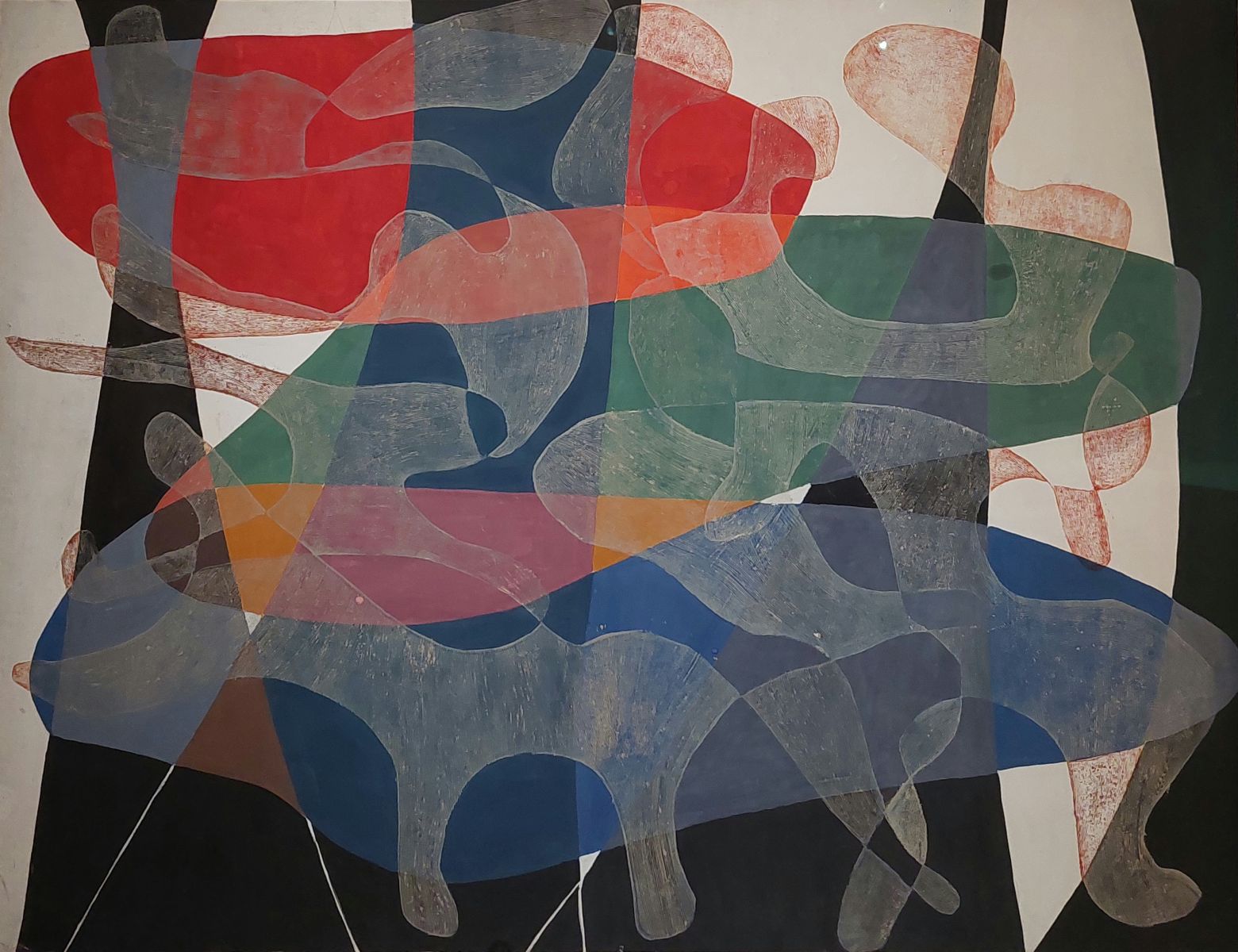 Maria Jarema, Penetracje I, 1957, tempera, monotypia na papierze przyklejonym na płótnie, Muzeum Sztuki, Łódź